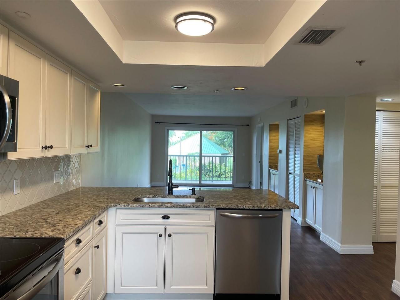 One or more photo(s) has been virtually staged. Perfect for your seasonal Florida escape in Terra Ceia Bay. This updated 2-bedroom, 2-bath condo offers easy, low-maintenance living with peaceful golf course views and a private balcony to enjoy your morning coffee all winter long. Luxury vinyl plank flooring, granite countertops, stainless appliances, and a split-bedroom layout make hosting visiting family and friends simple and comfortable. The primary suite features a walk-in closet and dual-sink granite vanity. New HVAC and water heater (2024), plus sellers have prepaid new hurricane windows and sliding door (approx. $18,000 value). Elevator building with private pool, gym, and recreation area. Gated community amenities include golf, tennis, pickleball, clubhouse, restaurant, tiki bar pool, fitness center, and fishing pier. Three-month minimum lease makes this ideal for snowbirds looking for sunshine without the upkeep. Call today for a private showing.