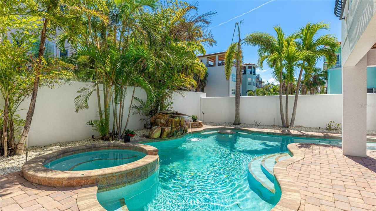 Expansive Gulf and Intracoastal views on Anna Maria Island Beach View Retreat. Custom-built 5 bedroom 4 bath home is not just a residence: it's a lifestyle. With quick access to the pristine beaches, vibrant local dining, live music, recreational activities, this property offers the perfect blend of relaxation and adventure. Experience an open and airy layout designed for relaxation and entertainment. The great room features large windows, two sets of French doors that let the natural sunlight, highlighting the elegant finishes and coastal decor throughout enjoy sitting on the front porch watching the palm trees sway. Adjacent to the great room is a gourmet kitchen, complete with stainless appliances, ample cabinetry, and a spacious island that invites casual dining and social gatherings. Step outside to your private outdoor oasis, where you can unwind by the sparkling pool surrounded by a waterfall and lush tropical landscaping. Lounge out in the sun from the rooftop deck and watch a sunset over the Gulf or enjoy panoramic views of the Intercoastal Waterway. The luxurious master suite provides a tranquil retreat, featuring expansive windows, French doors that lead out to the porch, enjoy the ensuite bathroom with a soaking tub and walk in shower, a spacious walk-in closet. Additional bedrooms are thoughtfully designed to accommodate guest or family members, each with a porch and 3 with ensuite bathrooms. Enjoy the 3+ car garage with 2 storage areas for all your beach and pool accessories. For guest that need an elevator it has access to all floors. Bring your boat or jet ski this home has ample parking for your guest and toys. Fantastic location with walking distance to Shops, Publix grocery store, drug stores and many local restaurants. No need to drive with a Island trolley that runs every 30 minutes accessing most popular hot spots on the island and it is FREE! This home comes turnkey furnished!