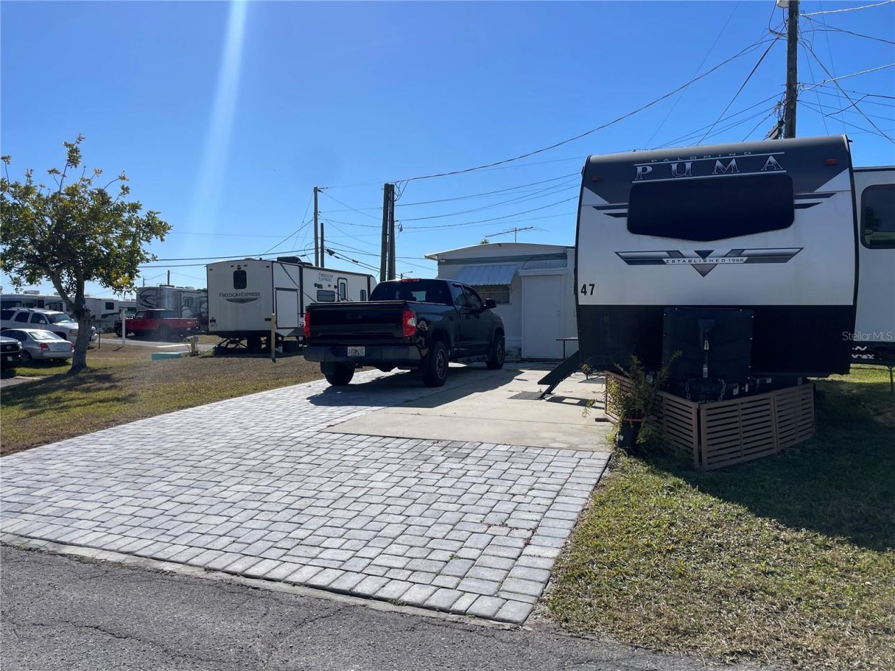 Welcome to lovely Jet Park! Jet Park is a great low key, active 55+ community located in a great central location of Palmetto. Close to shopping, restaurants, groceries and many major thoroughfares. Low monthly fees of only $195 per month. Bring your RV, trailer, 5th wheel to Florida whenever you want! Sites will also accommodate a mobile home or park model. Jet Park has a boat ramp for the residents which gives you direct access to the Gulf of America. There is also a picnic area with fire pit, kayak launch, shuffleboard, pool, full clubhouse with kitchen. This corner lot offers upgraded pavers for a beautiful patio area. Lots can fit motorhomes or you may put a mobile home on it.
