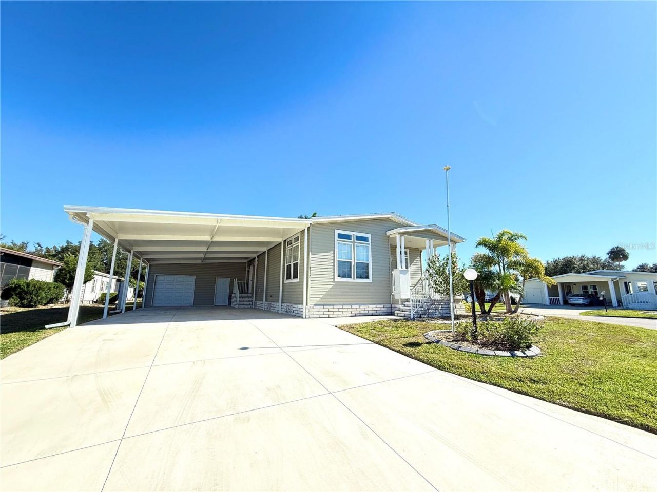 Welcome to the beautifully maintained 55+ Imperial Lakes Estates community. This is a land owned community with no lot rent. Featuring a 2 bedroom 2 bathroom double wide manufactured home offering just under 1,200 square feet of thoughtfully designed living space and an oversized carport.Custom built in 2023, this like new home features a newer roof, AC, water heater, appliances, and all new windows. As you enter, you are welcomed by an open and spacious living room and kitchen combination that feels bright and inviting.The kitchen is a true standout with 42 inch cabinetry, newer stainless steel appliances, a large island with sink, and additional cabinet storage, making it perfect for cooking and entertaining. Crown molding throughout! The home is fully furnished and move in ready for its next owner.Community members of Imperial Lakes Estates Have access to resort style amenities including two heated pools, a spa, pickleball courts, shuffleboard, bocce, and horseshoes. The Community clubhouse features a library, game room with pool tables, and a full calendar of social events and activities throughout the year.Conveniently located near shopping, dining, and major highways with easy access to I 75, this home offers convenient connections to Bradenton, St Petersburg, and the area's beautiful Gulf beaches.